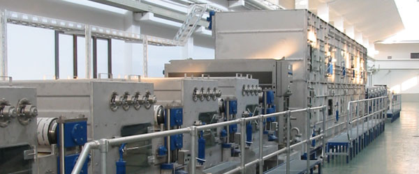 - Instalaciones de acabado a la continua al ancho en húmedo, para el lavado, mercerizado, blanqueo, tintura y secado de tejidos de calada.
